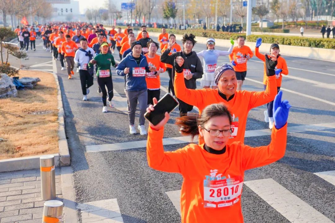 活动设竞赛组(10公里)和全民健身组(3公里)两个组别,采取分时分枪发令起跑的方式进行。上午9时整,10公里竞赛组的选手率先出发,一个个活力四射的身影汇聚成移动的巨龙,描绘出体育郑州的生动画卷。紧随其后,3公里全民健身组鸣枪,来自我市机关企事业单位、社会团体的长跑爱好者,迈着矫健的步伐踏上赛道。浩浩荡荡的长跑队伍,如一条串联起城市记忆的珍珠项链,穿越城市的繁华与宁静,选手们跑过奥体中心、美术馆、博物馆、大剧院等郑州文体地标建筑,领略了这座城市的独特韵味。近万名跑步爱好者的脸上洋溢着新年的喜悦与期待,如同万朵鲜花傲然绽放,让冬日的绿城暖意融融、活力满满。