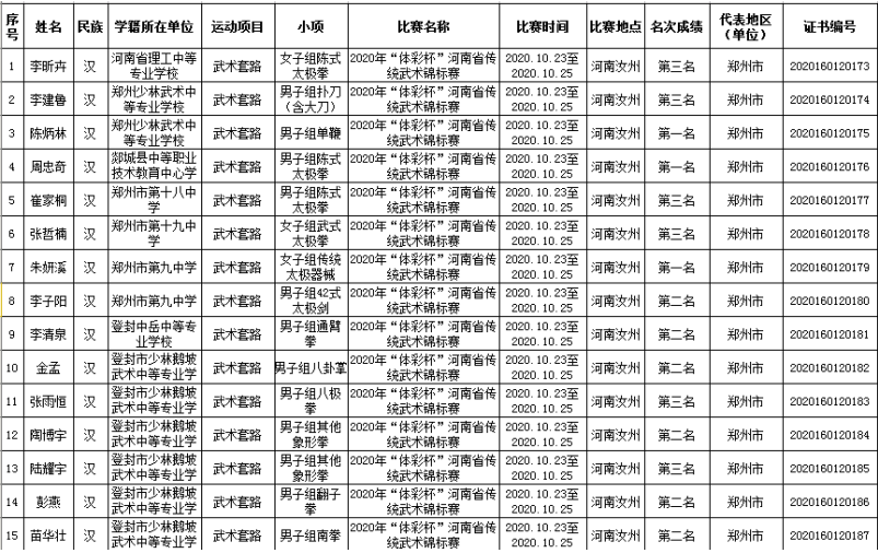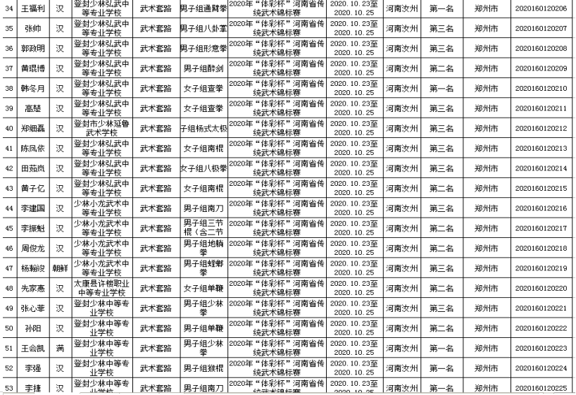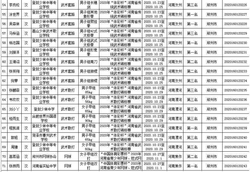 根据《运动员技术等级管理办法》的规定,现对拟授予国家二级运动员称号的李昕卉等 71 人进行公示,公示期自2020年12月2日至12月10日,共七个工作日。