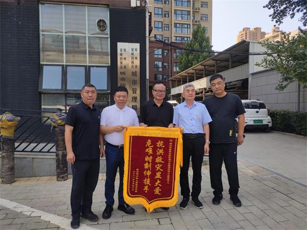 在这次防汛抢险救灾工作中,社区机关齐心协力,互帮互助,携手共同渡过难关。连日暴雨加上排水不通畅,作为群众重要健身场地的市体育场受到了严重的洪水袭击,积水深达1米,加上断水断电,无法及时排水,局领导看在眼里、急在心里。北下街办事处和区人武部得知情况后,及时协调城管部门,在辖区救灾任务繁重的情况下,积极调遣来自西安的义务抢险救援队连日奋战将场地积水排干。面对体育场排水后泥沙淤积、人工清理难度大的情况,北下街办事处又积极协调管城区城市管理局,由管城区环卫中心派出5辆大型洒水车,在体育场内进行强力排污清淤工作,把17000平方米的体育场冲刷得焕然一新。7月30日,局领导为管城区城市管理局、管城区人武部、北下街办事处送去锦旗表示感谢,共同把社区共驻共建共享的良好工作机制不断延续下去。