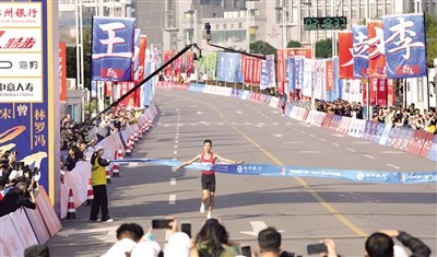 11月3日上午,9点48分,郑州郑东新区会展路。当身着红色运动服,佩戴着11834号号码布的辽宁选手许王出现在人们视野当中时,掌声四起,等候在那里的摄影记者们也“严阵以待”。热烈的气氛中,许王冲过终点,计时器定格在2小时18分36秒,在场的人们见证了“郑州银行杯”2024年郑州马拉松男子组冠军的产生。这一天,和许王一起奔跑在2024郑马赛道上的共有4万人,他们年龄不同、职业不同,成绩也不同,但能在这样一个温暖的秋日里迈开挑战自我的步伐,尽享奔跑的乐趣,每个人都是冠军。