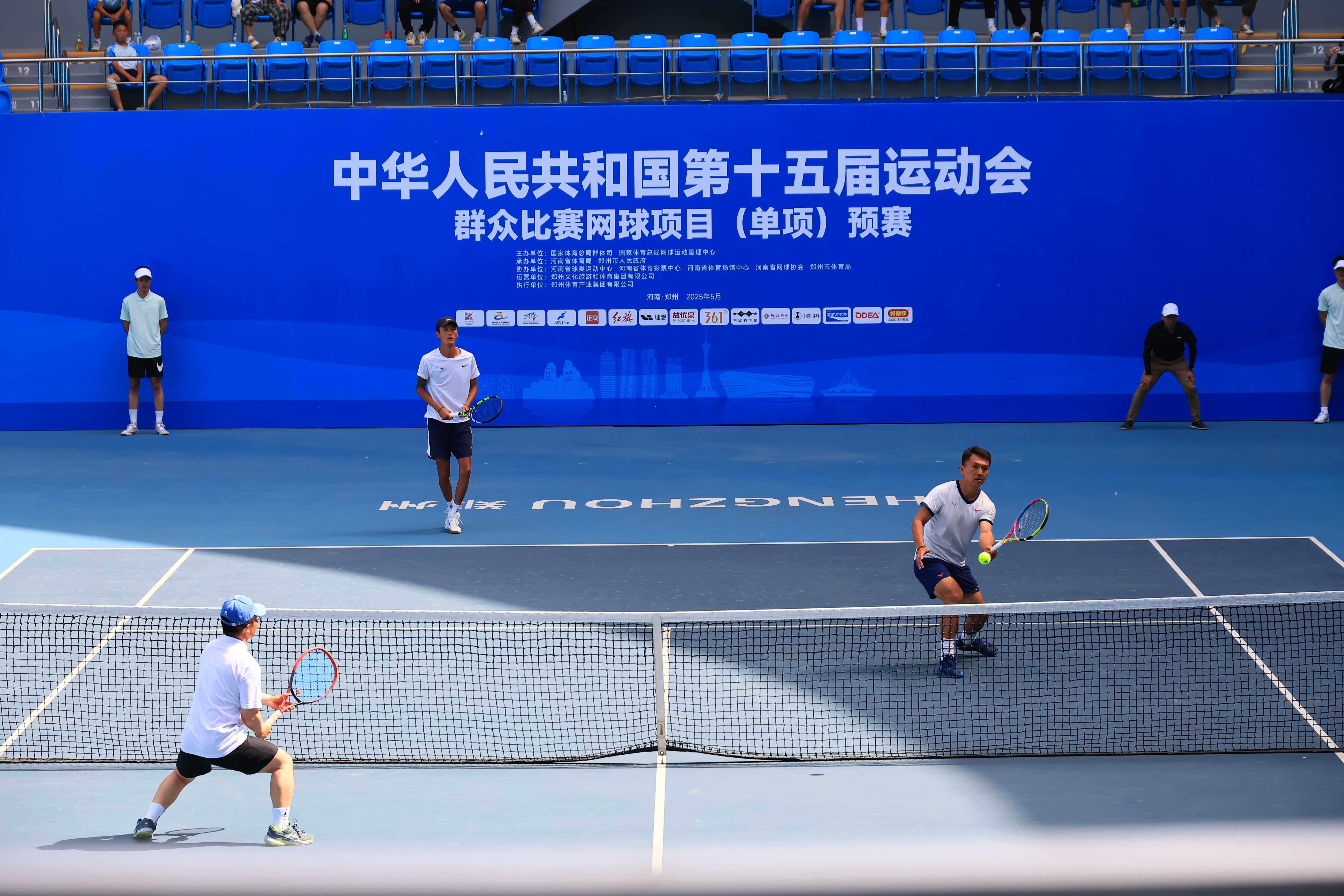 5 月 18 日,中华人民共和国第十五届运动会群众比赛网球项目(单项)预赛在河南省体育场馆中心东区网球场拉开帷幕。来自全国 29 支代表队的 183 名选手展开首日角逐,十四届全运会群众组网球双冠王钟晋在男子单打和混合双打比赛中双线告捷,而河南名将孙一鸣也和搭档曹涵在男双比赛中轻松战胜对手,赢得开门红。
