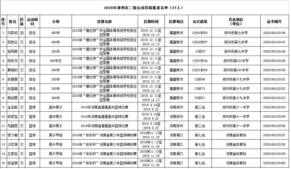 各有关单位: 根据《运动员技术等级管理办法》的规定,现对拟授予国家二级运动员称号的徐柏胜进行公示,公示期自2020年6月1日至9日,共七个工作日。