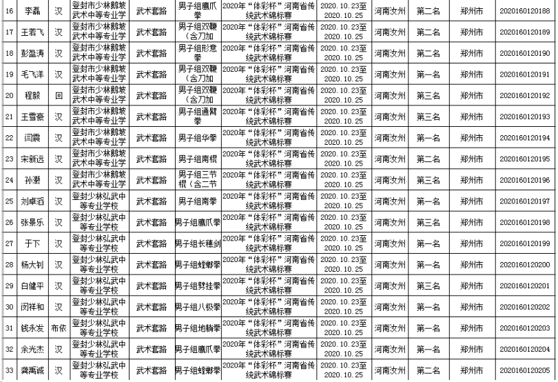 根据《运动员技术等级管理办法》的规定,现对拟授予国家二级运动员称号的李昕卉等 71 人进行公示,公示期自2020年12月2日至12月10日,共七个工作日。